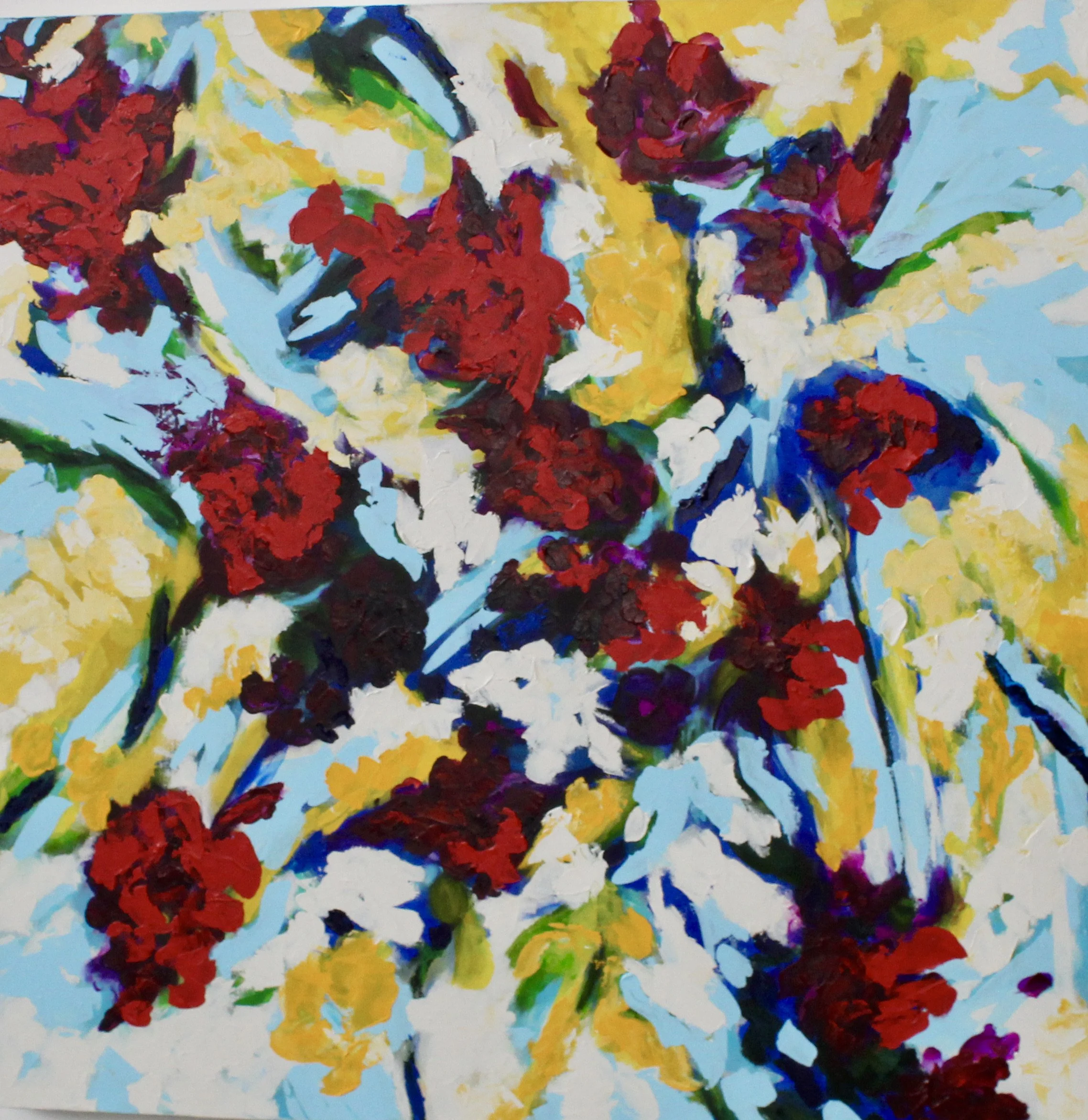 While I continue exploring and developing my art in landscapes, contemporary portraits, and collages, I am currently presenting to the public a new series of paintings that I have named “VORTEX.” This idea came to me following a dream where I was simultaneously in two worlds, “here and somewhere else.” This series focuses on the interface where the materials meet, taking on the qualities of the objects around them, such as the floating characteristics of flowers with the life flowing within.